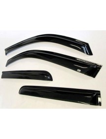 Set von vier schwarzen Fensterabweisern für Front- und Heckanwendung. Diese Fensterabweiser sind einfach zu installieren, mit einem selbstklebenden Klebeband versehen, das die Fensterabweiser dauerhaft fixiert, ohne die Notwendigkeit zu bohren.